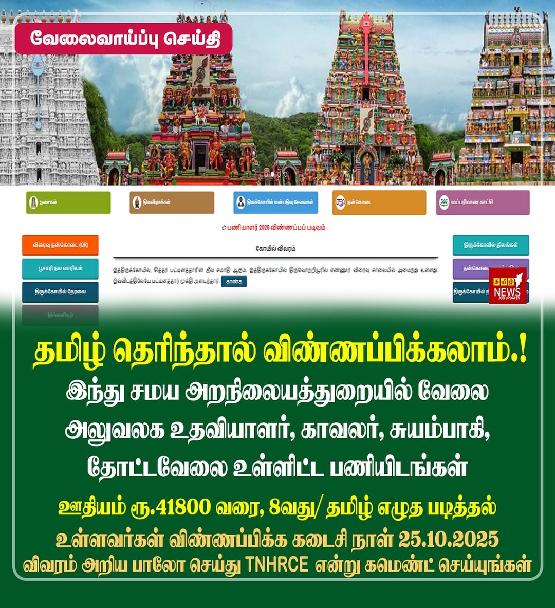 தேர்வு கிடையாது..! இந்து சமய அறநிலையத் துறையில் அலுவலக உதவியாளர் வேலைவாய்ப்பு Tamil Nadu Hindu horticulture recruitment 2025
