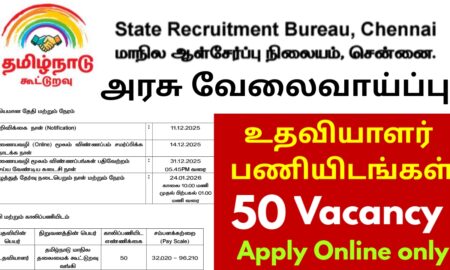 தமிழ்நாடு ஊரக வளர்ச்சி மற்றும் ஊராட்சித் துறையில் காலியாக உள்ள 1,450 கிராம ஊராட்சி செயலர் பணியிடங்களை நிரப்ப இன்று (அக்டோபர் 10) அரசாணை வெளியாகியுள்ளது. https://www.tnrd.tn.gov.in/ என்ற இணையதளத்தில்...