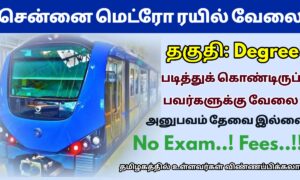 தமிழக அரசு சென்னை மெட்ரோ இரயில் நிறுவனத்தில் Internship அறிவிப்பு வெளியாகியுள்ளது. No. of Vacancies : 19 Qualification:- Stipend of Rs.10,000/- per month Application fee...